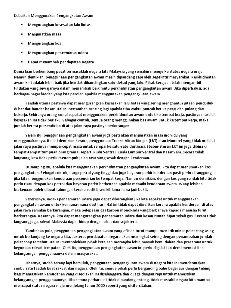Diari Cikgu Chom Karangan Contoh 2 Kebaikan Menggunakan Pengangkutan Awam Pdf